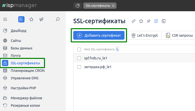 Получение SSL сертификата